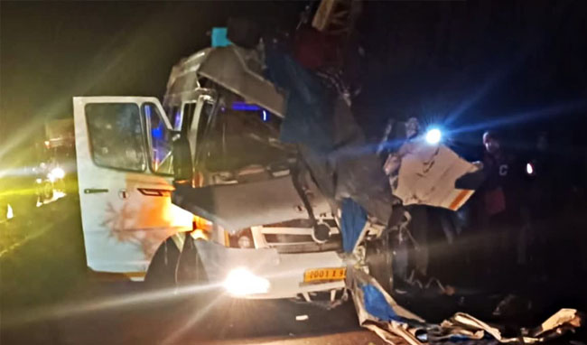 महू के पास ट्रैवलर और टैंकर की टक्कर में 6 की मौत, 17 घायल, महाकाल दर्शन कर कर्नाटक लौट रहे थे तीर्थयात्री