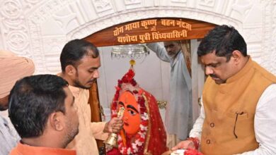 रायपुर : स्कूल शिक्षा मंत्री गजेन्द्र यादव ने धमतरी में माँ विंध्यवासिनी मंदिर में की पूजा-अर्चना