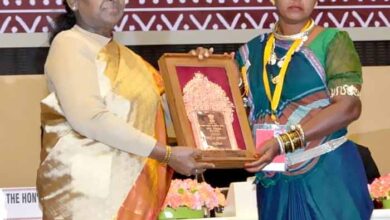 रायपुर : राष्ट्रपति द्रौपदी मुर्मु के हाथों हीराबाई झरेका बघेल राष्ट्रीय हस्तशिल्प पुरस्कार से सम्मानित