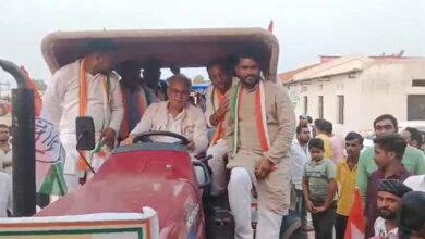 बिलासपुर के कांग्रेस महापौर प्रत्याशी प्रमोद नायक के समर्थन में भूपेश बघेल ने निकाली ट्रैक्टर रैली