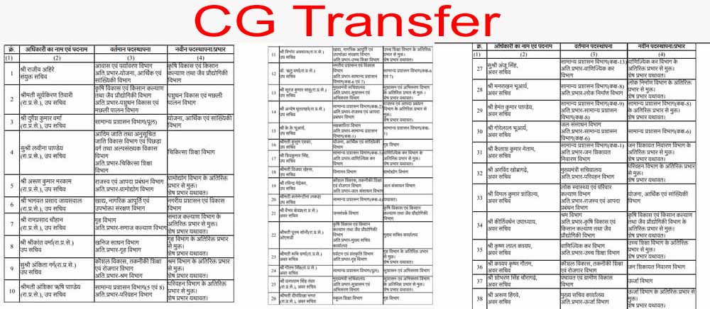 तबादला सूची में कई अधिकारियों को उनके मौजूदा अतिरिक्त प्रभार से मुक्त किया गया है, जबकि उनका मूल प्रभार यथावत रहेगा-