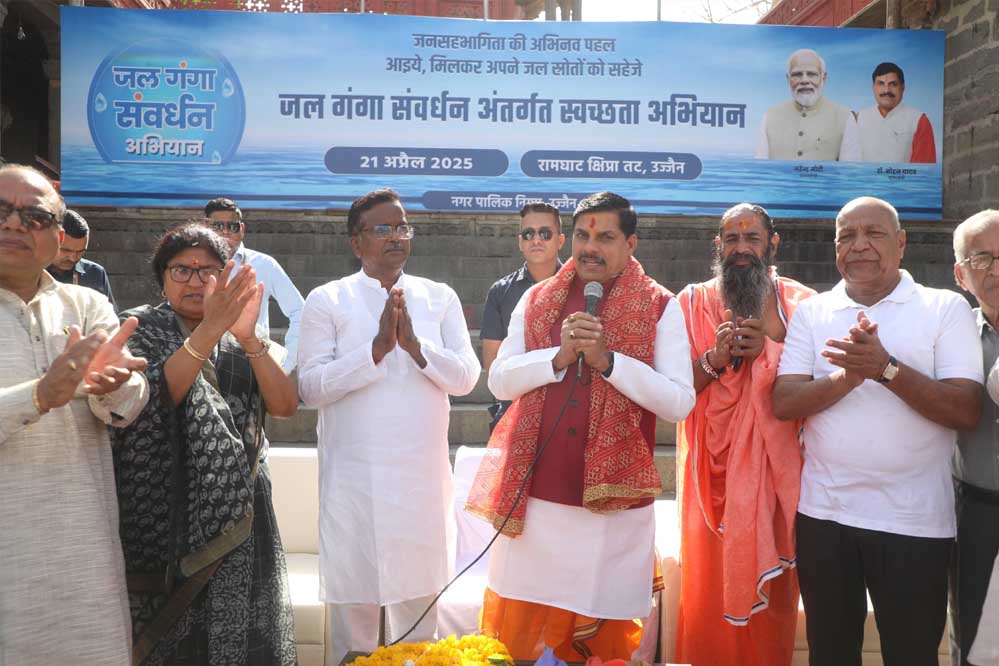 मुख्यमंत्री डॉ. यादव ने माँ क्षिप्रा के घाटों की सफाई कर जल गंगा संवर्धन अभियान में सहभागिता की