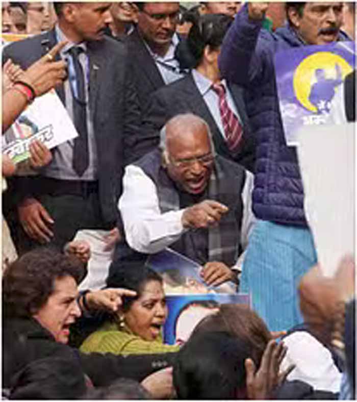 कांग्रेस प्रमुख मल्लिकार्जुन खरगे ने आरोप लगाए, भाजपा सांसदों ने मुझे मारा धक्का, घुटने में लगी चोट