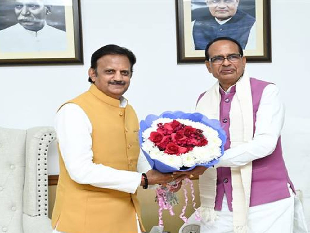 केंद्रीय कृषि मंत्री चौहान से उप मुख्यमंत्री शुक्ल ने की सौजन्य भेंट