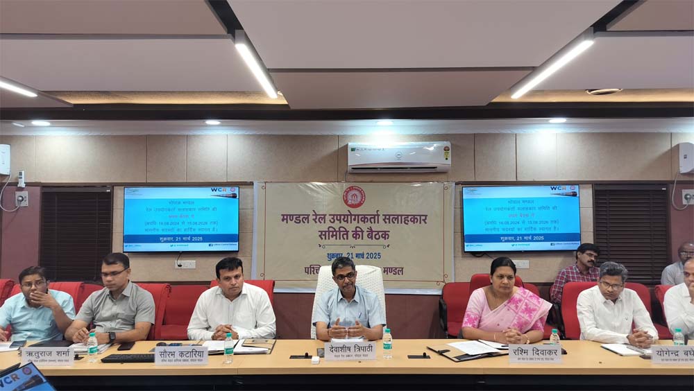 भोपाल रेल मंडल के डीआरएम कार्यालय के कॉन्फ्रेंस हॉल में मंडल रेल उपयोगकर्ता सलाहकार समिति (डीआरयूसीसी) की बैठक का आयोजन किया गया। बैठक की अध्यक्षता मंडल रेल प्रबंधक श्री देवाशीष त्रिपाठी ने की। बैठक में डीआरयूसीसी के 11 सदस्यों में से कुल 10 सदस्य उपस्थित रहे। इस अवसर पर वरिष्ठ मंडल वाणिज्य प्रबंधक श्री सौरभ कटारिया ने पावर पॉइंट प्रेजेंटेशन के माध्यम से भोपाल मंडल की उपलब्धियों एवं वर्तमान में प्रदान की जा रही यात्री सुविधाओं के बारे में विस्तारपूर्वक जानकारी दी।