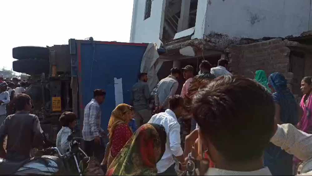 स्टेयरिंग फेल होने से एक डंपर अनियंत्रित होकर एक मकान में जा घुसा, दो बकरियों की मौत, लोगों की लगी भीड़