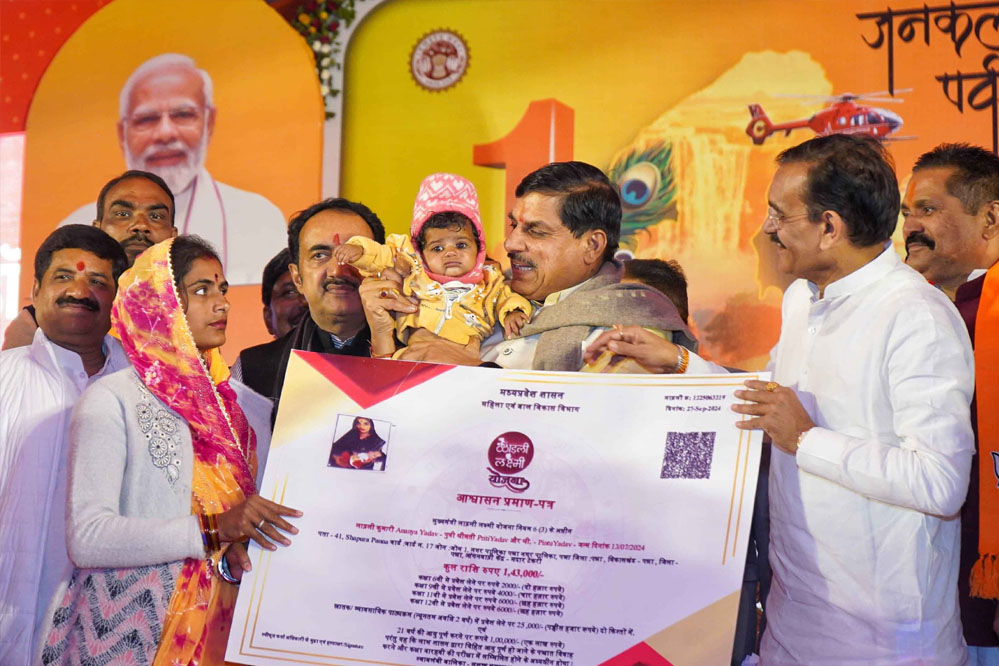 मुख्यमंत्री डॉ. मोहन यादव ने पन्ना में आयोजित जल कलश यात्रा, संत सम्मेलन और लोक कल्याण शिविर में 98 करोड़ रूपये के 13 विकास कार्यों की सौगात देते हुए कहा कि 25 दिसम्बर से बुन्देलखण्ड क्षेत्र की प्रगति के नये द्वार खुल रहे हैं। उन्होंने कहा कि बुन्देलखण्ड का हर व्यक्ति खुशहाल होगा। पूर्व प्रधानमंत्री भारत रत्न स्व. अटल बिहारी वाजपेई की 100वीं जयंती पर प्रधानमंत्री नरेन्द्र मोदी केन-बेतवा नदी जोड़ो परियोजना का खजुराहो में शिलान्यास करेंगे। मुख्यमंत्री डॉ. यादव ने पन्ना क्षेत्र के अजयगढ़ में 100 सीटर कन्या और 50 सीटर बालक छात्रावास बनाने की घोषणा की। मुख्यमंत्री डॉ. यादव का कार्यक्रम में बुन्देलखण्डी पगड़ी पहनाकर सम्मान किया गया। आंगनवाड़ी कार्यकर्ताओं ने मुख्यमंत्री को भगवान जुगल किशोर की पेंटिंग भेंट की।