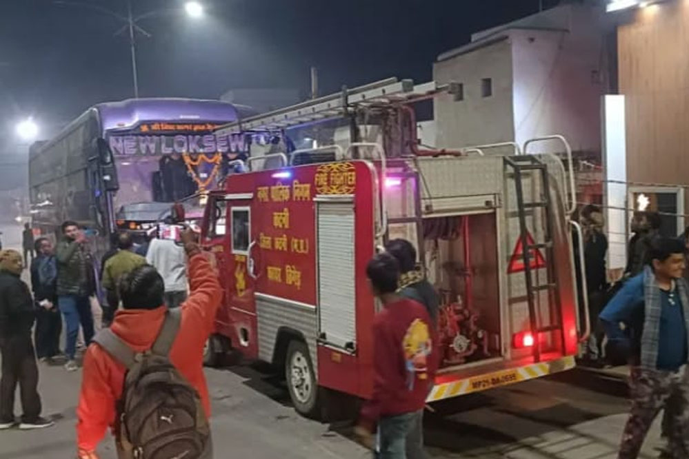 चांडक चौक ब्रिज पर इंदौर जा रही चलती ऐसी बस में लगी आग, मची अफरा तफरी