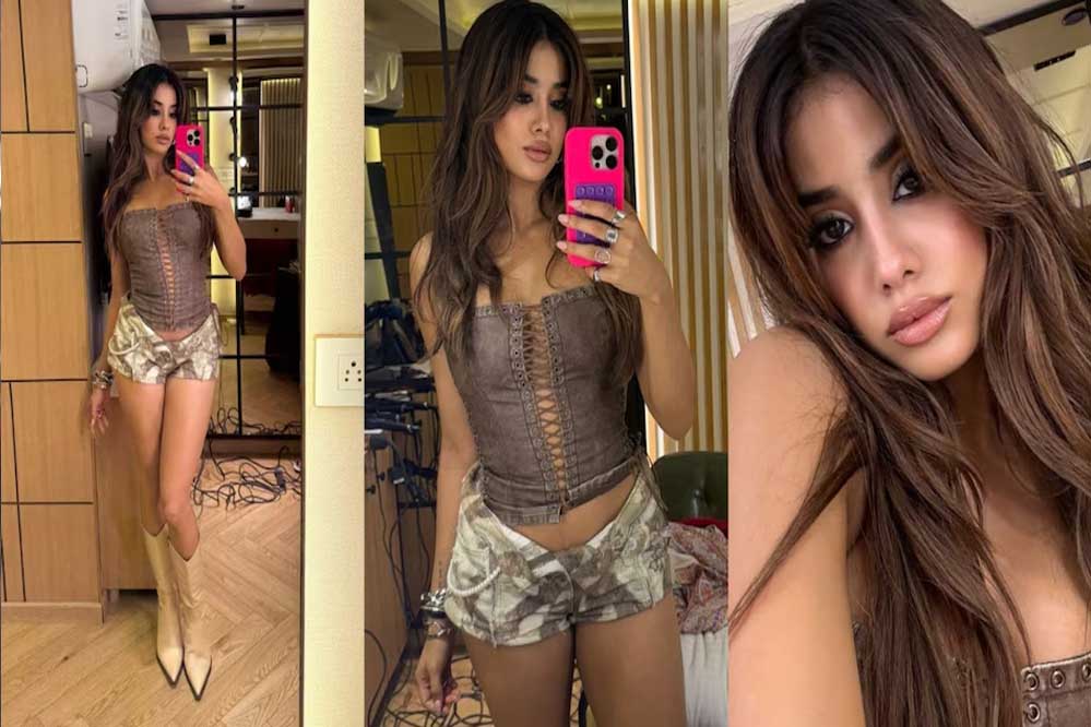 काउगर्ल बनीं जाह्नवी कपूर, स्ट्रैपलेस कॉर्सेट और शॉर्ट्स में लूटी महफिल
