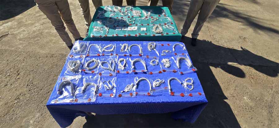 पुलिस ने आरोपियों के कब्जे से 03 लाख रुपए मूल्य के सोने-चांदी के जेवरात बरामद किए, जिनमें पायल, पाजेब, करधन, हाथ की मेहंदी, बच्चों के हाथ और पैर के चूड़े, गले की चेन, ब्रेसलेट, बड़ों के कंगन और चूड़े, और सोने के कान के 5 जोड़ी टॉप्स शामिल हैं।