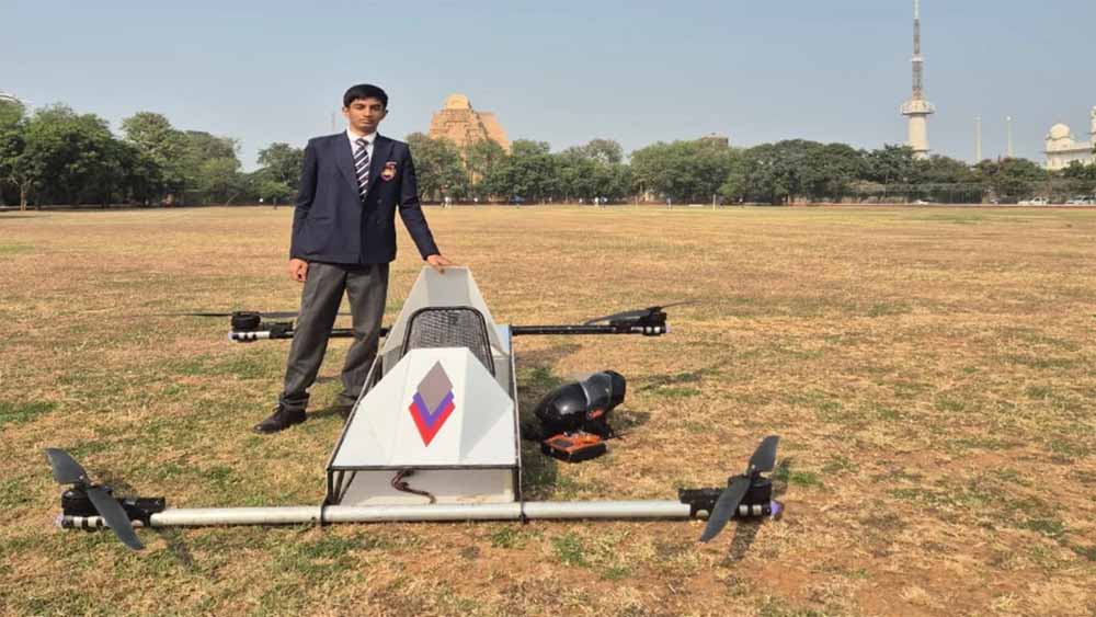 सिंधिया स्कूल फोर्ट के छात्र मेधांश त्रिवेदी ने मानव ड्रोन किया तैयार, चार किमी ऊंचाई तक जा सकता है