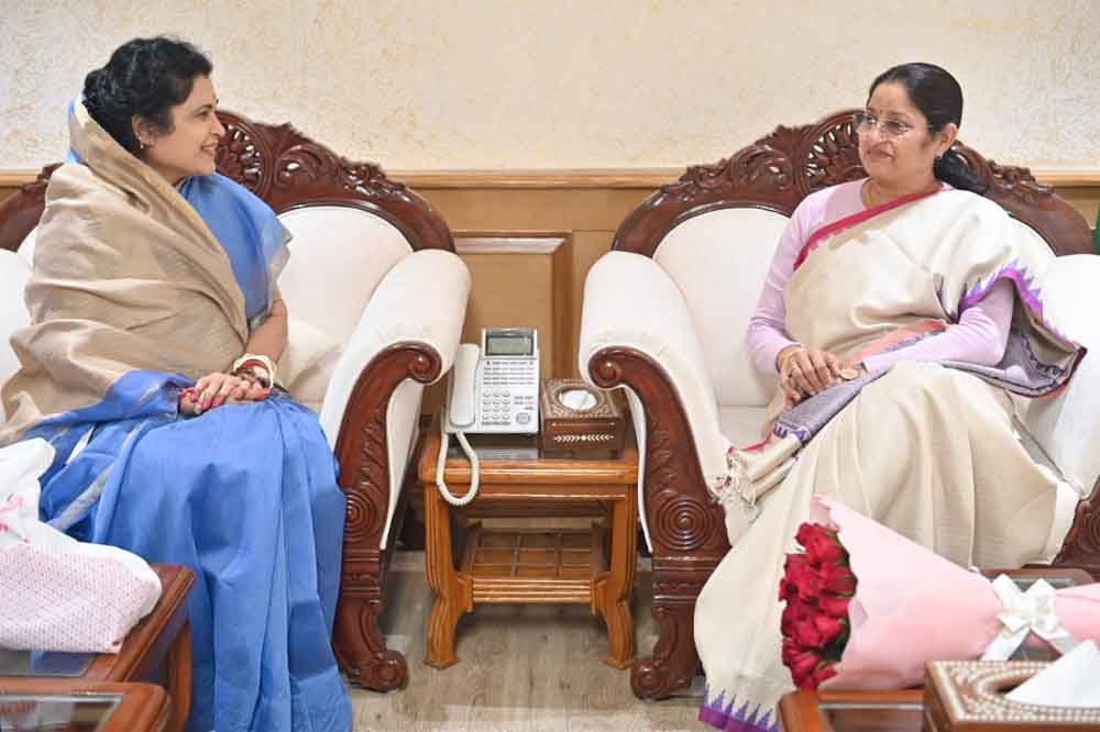 केन्द्रीय महिला एवं बाल विकास मंत्री श्रीमती अन्नपूर्णा देवी से राज्य मंत्री श्रीमती गौर ने की सौजन्य भेंट