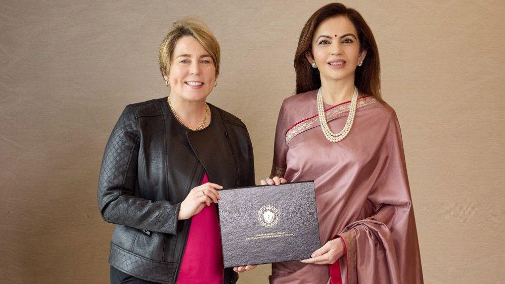 संस्थापक अध्यक्ष श्रीमती नीता अंबानी को मैसाचुसेट्स की गवर्नर माननीय मौरा हीली द्वारा प्रतिष्ठित गवर्नर प्रशस्ति पत्र से सम्मानित किया गया, जिसमें उन्हें एक दूरदर्शी नेता, दयालु परोपकारी और सच्चे वैश्विक परिवर्तनकर्ता के रूप में मान्यता दी गई। यह प्रशस्ति पत्र श्रीमती अंबानी के शिक्षा, स्वास्थ्य सेवा, खेल, कला, संस्कृति और महिला सशक्तिकरण में परिवर्तनकारी प्रभाव के लिए आजीवन समर्पण का सम्मान करता है – जिसने भारत और उसके बाहर लाखों लोगों के जीवन को प्रभावित किया है।