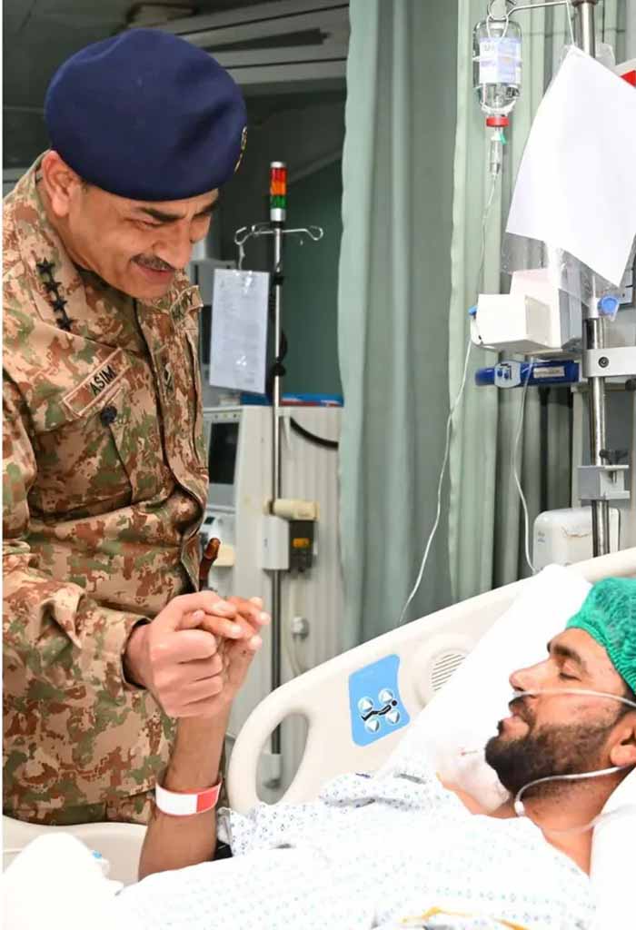 आसिम मुनीर ने अस्पताल में घायल जवानों से मुलाकात के बाद एक बार फिर गीदड़भभकी दी है। मुनीर ने कहा कि ‘हमारे दुश्मन कभी भी हमें झुका नहीं सकते। हमारी सेना के हौसले बुलंद हैं और हम दुश्मन का सामना करने के लिए हमेशा तैयार हैं।’