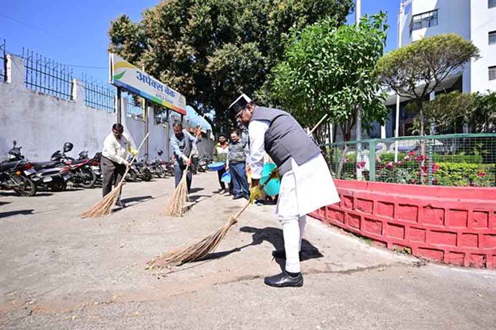 सहकारिता मंत्री श्री विश्वास कैलाश सारंग ने कहा है कि प्रधानमंत्री श्री नरेन्द्र मोदी के स्वच्छता के संदेश को आत्मसात कर अपने कार्य क्षेत्र को भी स्वच्छ बनायें। स्वच्छता से ही सकारात्मकता का संचार होता है। जिस प्रकार हम घर और घर के आसपास स्वच्छता रखते हैं, उसी प्रकार अपने कार्यस्थल पर साफ-सफाई के लिये हर माह एक नियत तारीख पर स्वच्छता अभियान चलाया जा रहा है। मंत्री श्री सारंग ने गुरुवार को अपेक्स बैंक मुख्यालय परिसर में झाड़ू लगाकर साफ-सफाई कर अंतर्राष्ट्रीय सहकारिता वर्ष-2025 के तहत चलाये जा रहे स्वभाव स्वच्छता, संस्कार स्वच्छता अभियान की शुरूआत की। पूरे प्रदेश में 10 हजार से अधिक सहकारी संस्थाओं के परिसरों में यह अभियान एक साथ चलाया गया।