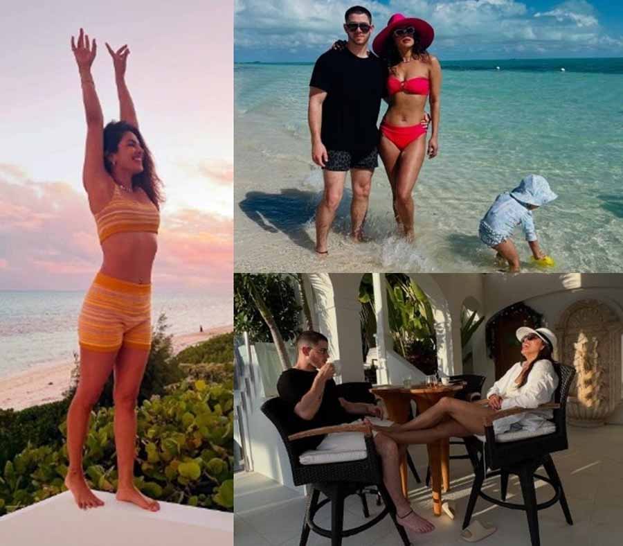 प्रियंका ने इंस्टाग्राम अकाउंट पर अपने पति निक जोनास और बेटी मालती मैरी सहित कई तस्वीरें शेयर की। पहली तस्वीर में प्रियंका ऑरेंज रंग की बिकिनी पहन अपने आलीशान विला की छत पर खड़ी दिखाई दे रही हैं।