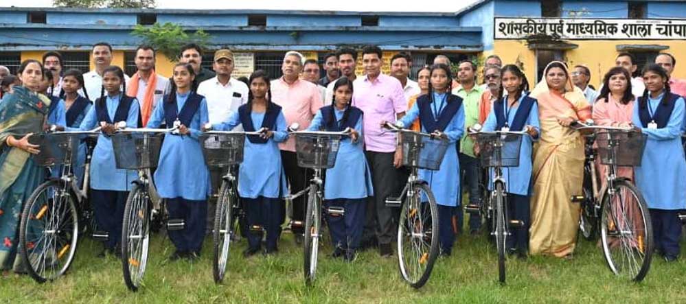 राजस्व मंत्री टंकराम वर्मा ने शुक्रवार को बलौदाबाजार विकासखंड के शासकीय उच्चत्तर माध्यमिक विद्यालय चांपा में आयोजित कार्यक्रम में शामिल होकर छात्र-छात्राओं के बीच नई ऊर्जा का संचार किया। उन्होंने विद्यालय परिसर में प्रार्थना शेड एवं किचन शेड निर्माण के लिए भूमिपूजन किया तथा सरस्वती साइकिल योजना अंतर्गत 57 छात्राओं को साइकिल वितरित की। इसके साथ ही कक्षा 10वीं एवं 12वीं की मेरिट सूची में स्थान प्राप्त करने वाले विद्यार्थियों को प्रोत्साहन राशि के चेक भी प्रदान किए।