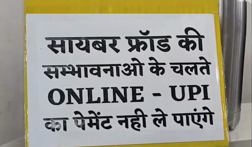 शहर के राजबाड़ा क्षेत्र में कपड़ों की कुछ दुकानों में लगाए गए बोर्ड में कहा गया है, ‘साइबर फ्रॉड की आशंकाओं के चलते ऑनलाइन-यूपीआई का पेमेंट नहीं ले पाएंगे।’