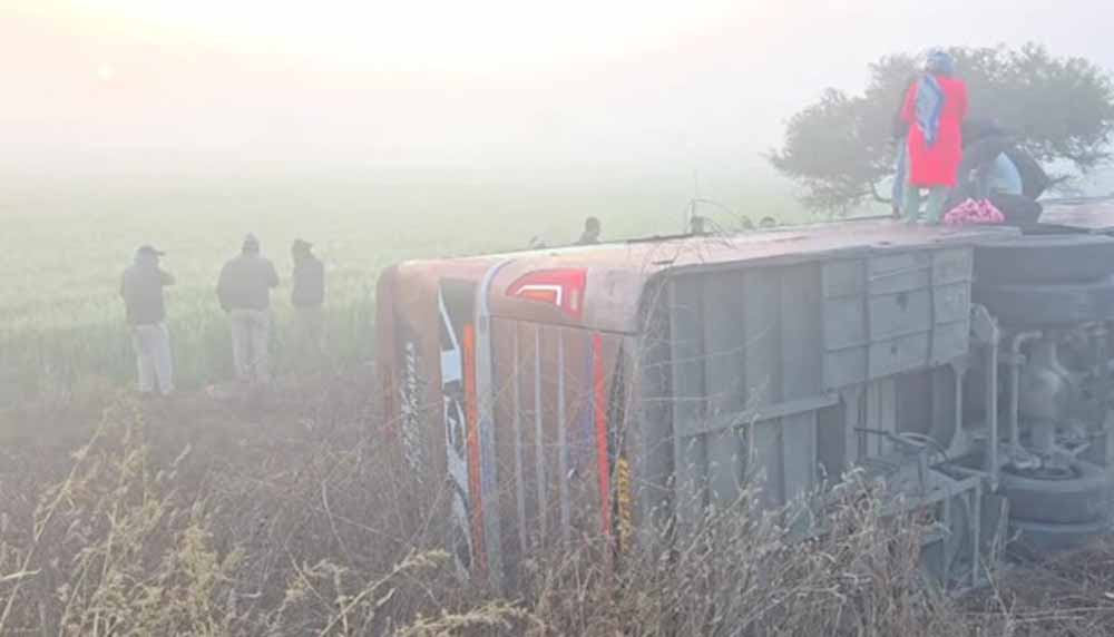 गणेशपुरा जोड़ गांव के पास सड़क हादसा: खाटू श्याम से इंदौर जा रही बस सुसनेर में पलटी, 17 यात्री हुए घायल