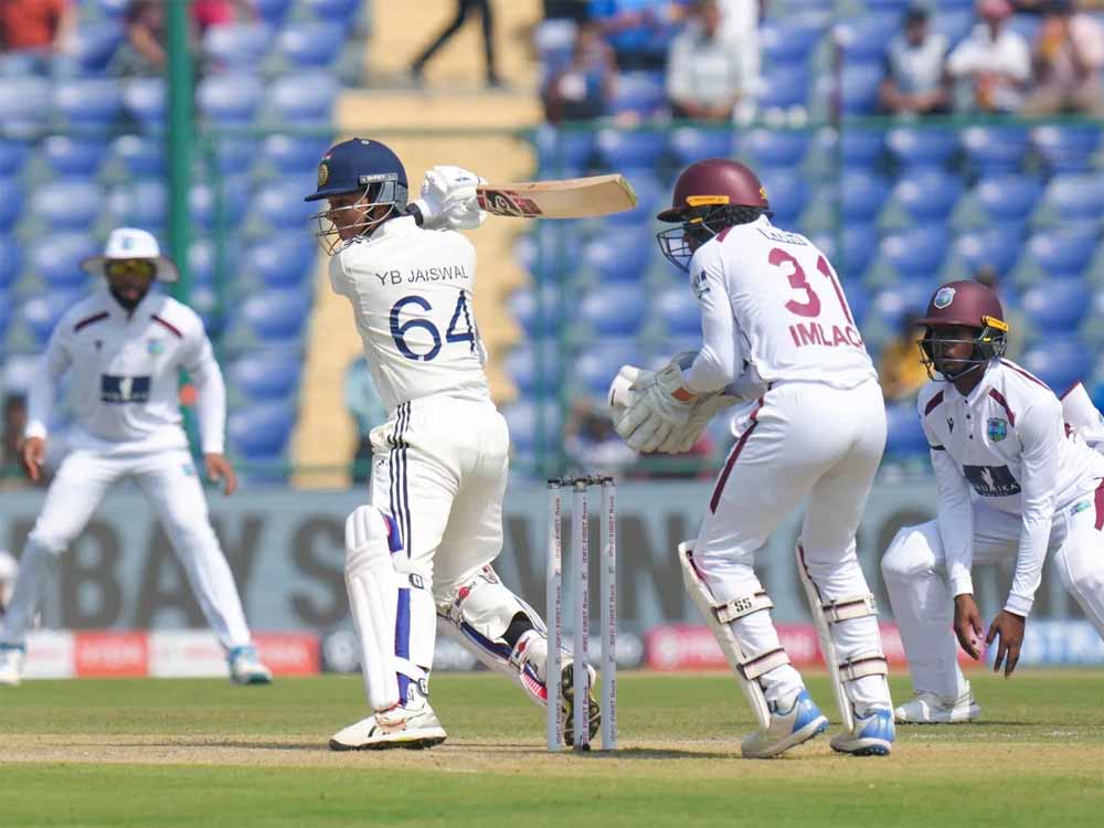 भारत बनाम वेस्टइंडीज दूसरा टेस्ट दिल्ली के अरुण जेटली स्टेडियम में खेला जा रहा है। यशस्वी जायसवाल ने शतक ठोक भारत को मजबूत स्थिति में पहुंचा दिया है। यह उनका टेस्ट करियर का 7वां शतक है। टॉस जीतकर पहले बैटिंग करने उतरी टीम इंडिया को केएल राहुल और यशस्वी जायसवाल ने सधी हुई शुरुआत दी। दोनों ने पहले विकेट के लिए 58 रन जोड़े। भारत को पहला झटका वारिकन ने केएल राहुल को (38) आउट करके दिया। इसके बाद यशस्वी और साई सुदर्शन के बीच दूसरे विकेट के लिए 306 गेंद में 193 रन की साझेदारी हुई। साई 165 गेंद में 87 रन बनाकर आउट हुए। यशस्वी और गिल क्रीज पर हैं। अहदमाबाद के नरेंद्र मोदी स्टेडियम में हुए पहले मैच को भारत ने पारी और 140 रनों के अंतर से जीतकर सीरीज में 1-0 की बढ़त बनाई हुई है।
