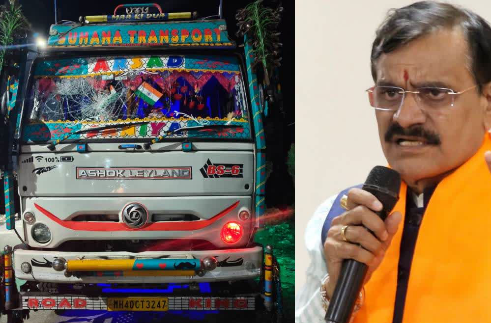 बाल-बाल बचे प्रदेश अध्यक्ष शर्मा काफिले को ट्रक ने मारी टक्कर, 8 पुलिस वाहन क्षतिग्रस्त