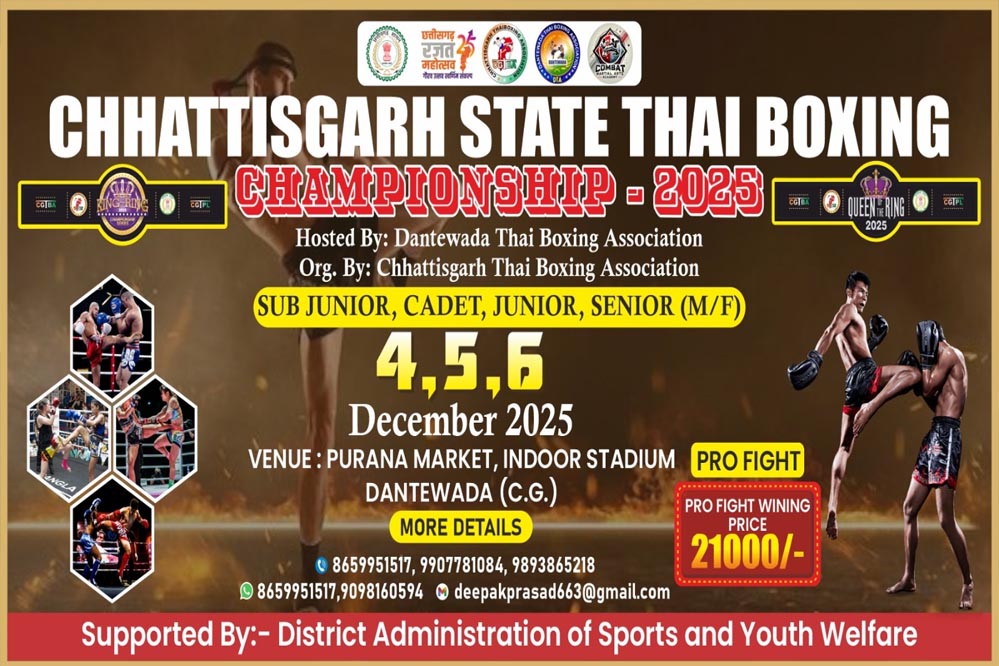 5-6 दिसंबर को छत्तीसगढ़ में थाई बॉक्सिंग, प्रशासन कार्यक्रम को बनाएगा सफल
