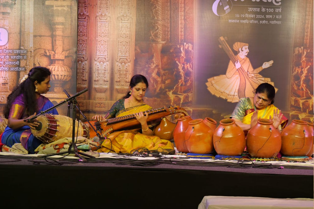गुरुवार को सायंकालीन सभा में महिला केंद्रित संगीत सभाएं सजी। इसके पूर्व परंपरानुसार ईश्वर की आराधना के गान ध्रुपद गायन हुआ। ध्रुपद केन्द्र, ग्वालियर के गुरू एवं शिष्यों ने यह प्रस्तुति दी। उन्होंने राग पूरिया धनामें आलाप, जोड़, झाला से राग को विस्तार देते हुए सूलताल की बंदिश ऐसी छबि तोरी समझत नाहीं…. से परिसर में दिव्यता घोल दी। पखावज पर पंडित जगतनारायण शर्मा, तानपुरा पर सुमुक्ता तोमर एवं अजय गुरू ने संगत दी। यह प्रस्तुति ध्रुपद गुरू अभिजीत सुखदांड़े एवं सहायक गुरु यखलेश बघेल के मार्गदर्शन में हुई।