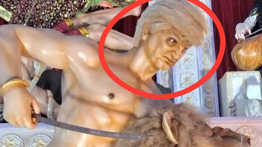 दुर्गा पूजा पंडाल में ट्रंप की मूर्ति, महिषासुर की जगह! पीएम मोदी को धोखा देने का संदेश?