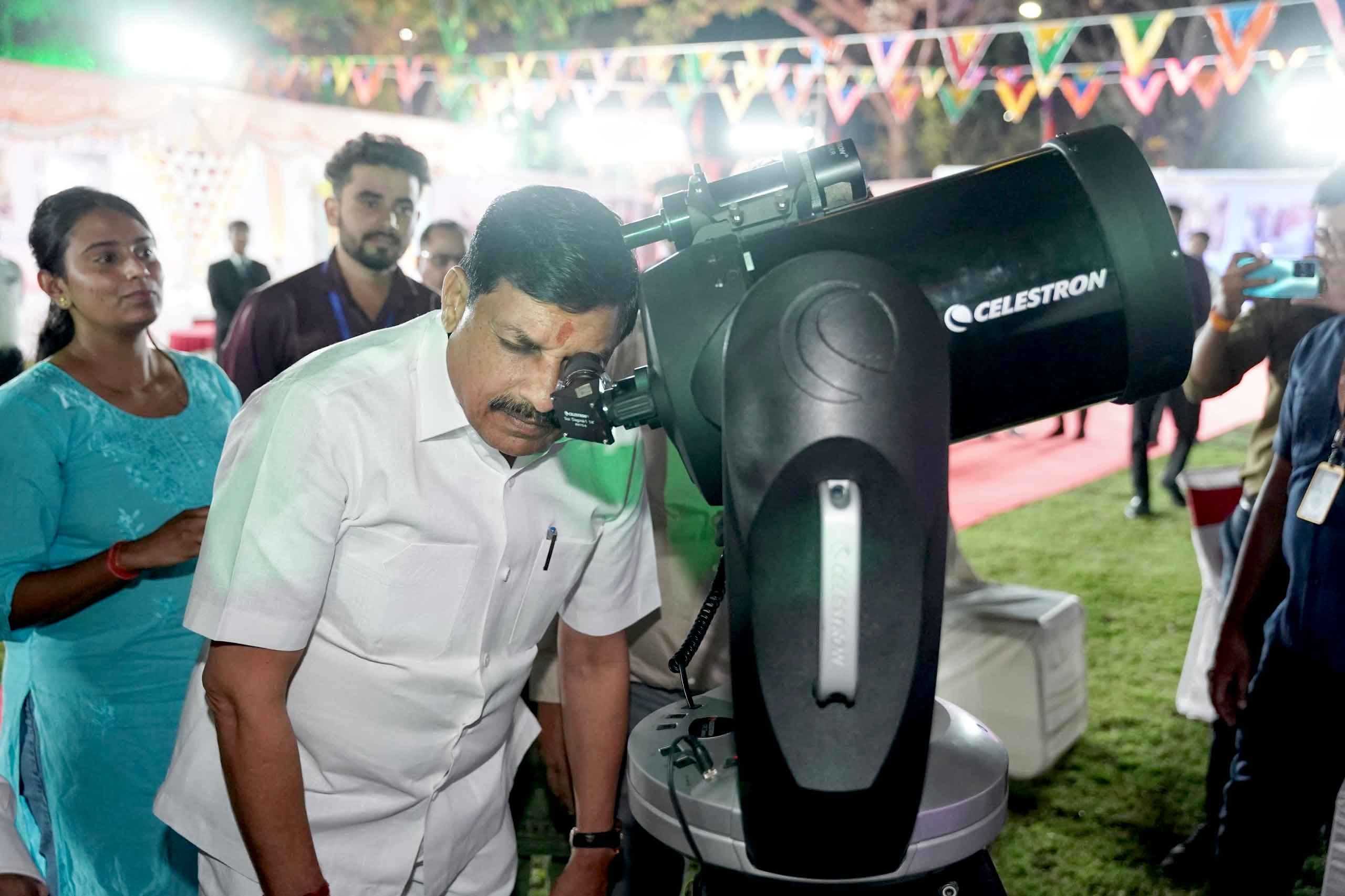 मुख्यमंत्री डॉ.यादव ने बच्चों से प्रश्न किए कि पृथ्वी और चंद्रमा में से परिक्रमा कौन करता है? ग्रह और उपग्रह में क्या अंतर है? गुरुत्वाकर्षण शक्ति क्या है? ग्रहों की परस्पर दूरी का आकलन किस तरह होता है? विद्यार्थियों के सारगर्भित उत्तर से मुख्यमंत्री डॉ. यादव बहुत प्रभावित हुए। उन्होंने यात्रा के लिए चयनित विद्यार्थियों के ज्ञान स्तर की प्रशंसा की। अपर मुख्य सचिव विज्ञान एवं प्रौद्योगिकी विभाग संजय दुबे, मैपकॉस्ट के महानिदेशक डॉ. अनिल कोठारी, मध्यप्रदेश हिन्दी ग्रंथ अकादमी के संचालक अशोक कड़ेल, विभिन्न विश्वविद्यालयों और उच्च शिक्षा संस्थानों के कुलगुरू एवं पदाधिकारी, शिक्षकगण उपस्थित थे।