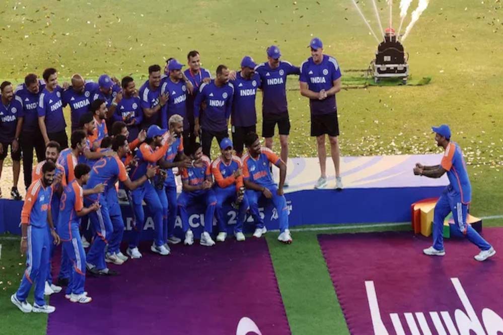 इसके बाद दुबई इंटरनेशनल स्टेडियम में एक अनोखा नजारा देखने को मिला जब प्रेजेंटेशन सेरेमनी असफल हो गई, लेकिन भारतीय खिलाड़ी मैदान पर ही सेलिब्रेशन मनाने से नहीं रुके. अधिकारियों के चले जाने के बाद टीम ने पोडियम पर जाकर अपनी खुशी जताई. कप्तान सूर्यकुमार यादव ने ट्रॉफी उठाने का अंदाज अपनाया और रोहित शर्मा के टी20 वर्ल्ड कप सेलिब्रेशन को भी रिपीट किया.
