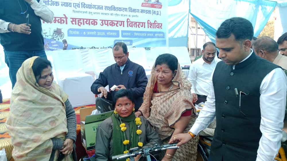 प्रदेश शासन की लोक स्वास्थ्य यांत्रिकी मंत्री श्रीमती संपतिया उइके ने कहा कि यशस्वी प्रधानमंत्री श्री नरेन्द्र मोदी और मुख्यमंत्री डॉ. मोहन यादव की सरकार दिव्यांगजनों के लिए सेवाभाव से काम कर रही है। सरकार ने दिव्यांगजनों के विकास और उत्थान के लिए विभिन्न योजनाएं संचालित की है। प्रधानमंत्री श्री नरेन्द्र मोदी ने विकलांग के स्थान पर दिव्यांगजन नाम देकर उन्हें गौरवान्वित किया है। दिव्यांगजनों की सेवा करना ही सच्ची मानवता की सेवा करना है। मंत्री श्रीमती संपतिया उइके सोमवार को निषादराज भवन में आयोजित सामाजिक न्याय एवं दिव्यांगजन उपकरण वितरण कार्यक्रम को संबोधित कर रही थी। मंत्री श्रीमती संपतिया उइके के आगमन पर उन्हें पौधा भेंट कर स्वागत किया गया। उन्होंने मां सरस्वती की प्रतिमा पर दीप प्रज्वलित कर कार्यक्रम का शुभारंभ किया। इस अवसर पर नगरपालिका अध्यक्ष श्री विनोद कछवाहा, जनपद पंचायत मंडला अध्यक्ष श्री सोनू भलावी, भाजपा नगर अध्यक्ष श्री शिवा रानू राजपूत, सांसद प्रतिनिधि श्री जयदत्त झा, कलेक्टर श्री सोमेश मिश्रा, जिला पंचायत के मुख्य कार्यपालन अधिकारी श्री श्रेयांश कूमट, डिप्टी कलेक्टर श्री आशुतोष ठाकुर, मुख्य नगरपालिका अधिकारी श्री गजानंद नाफड़े, श्री प्रफुल्ल मिश्रा सहित विभागीय अधिकारी, कर्मचारी मौजूद थे।
